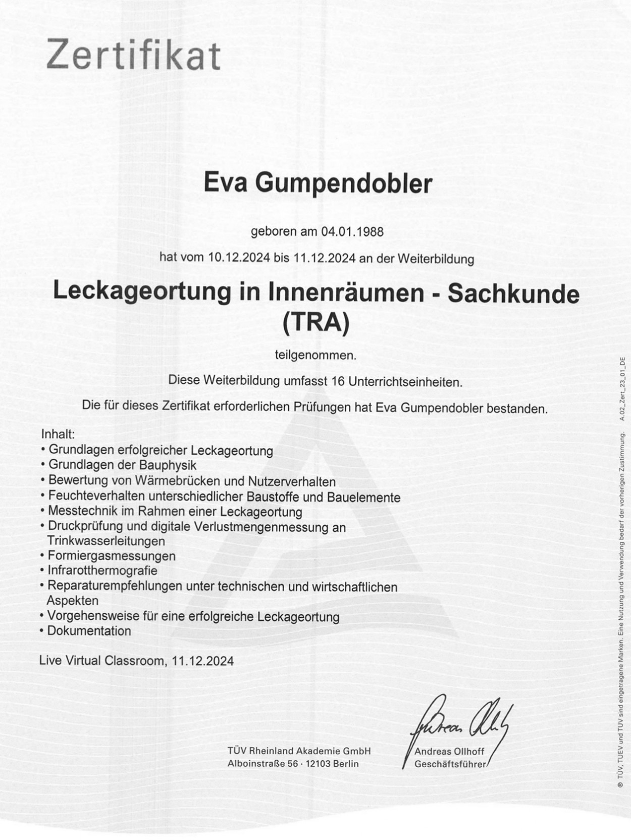 Wir behandeln Ihre Daten DSGVO-konform und sind TÜV Rheinland geprüfter Leckageorter.